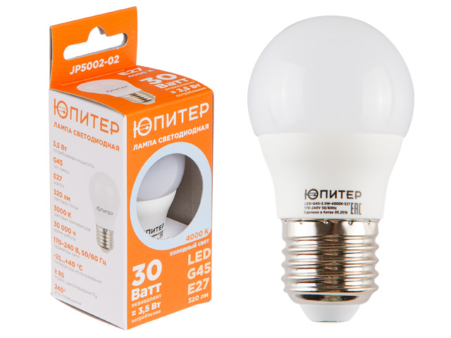 Лампа светодиодная G45 ШАР 7,5 Вт 170-240В E27 4000К ЮПИТЕР