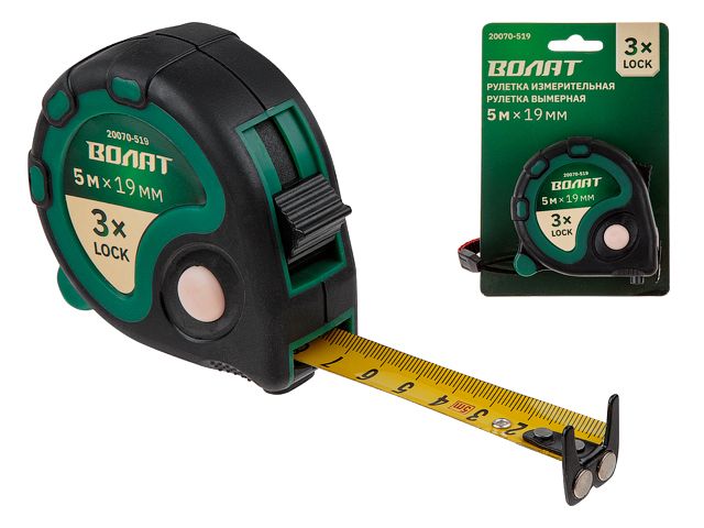 Рулетка 5м/19мм обрезин. корп. ВОЛАТ (быт.)