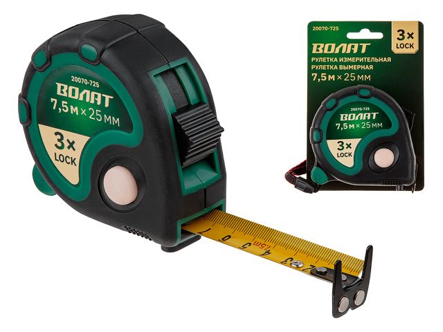 Рулетка 7,5м/25мм обрезин. корп. ВОЛАТ (быт.)