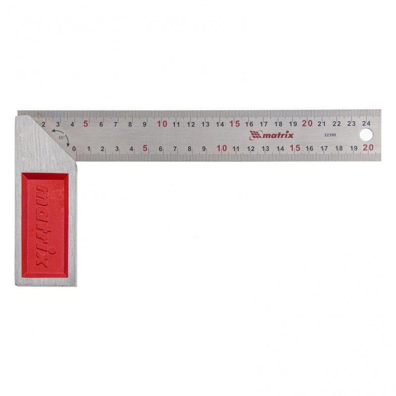 Стальной угольник Matrix 32390 длиной 250 мм, с градуировкой, — измерительный инструмент для построения и контроля углов. Будет полезен для проведения столярных и строительных работ.