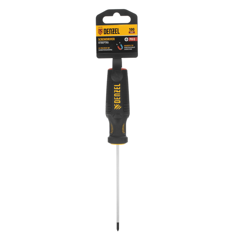 Отвертка PH0х100 мм, CrV, трехкомпонентная рукоятка Denzel
