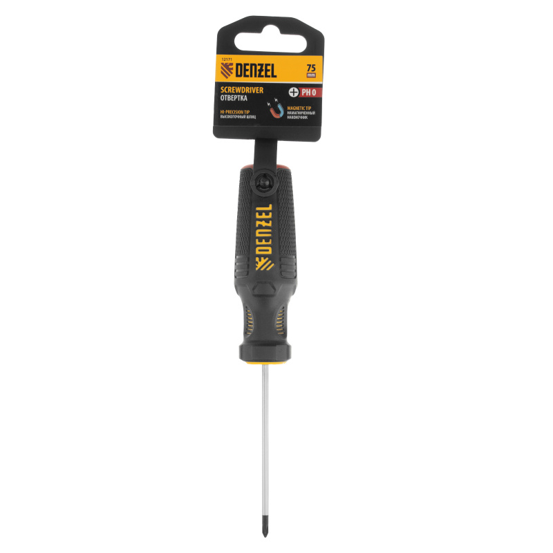 Отвертка PH0х75 мм, CrV, трехкомпонентная рукоятка Denzel