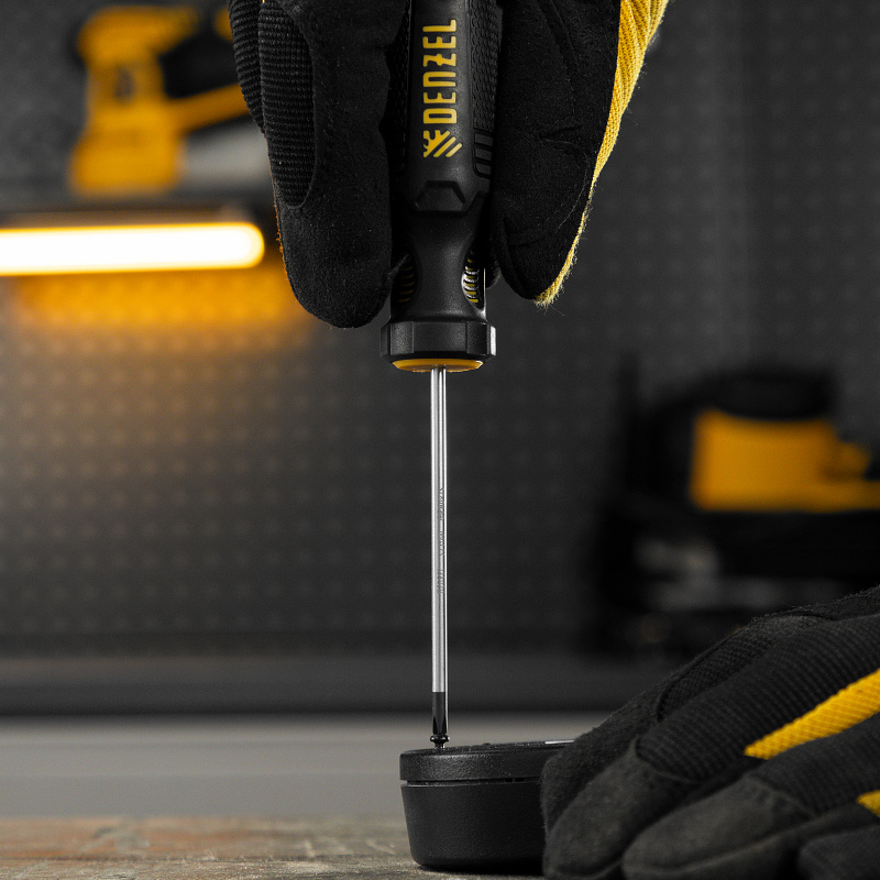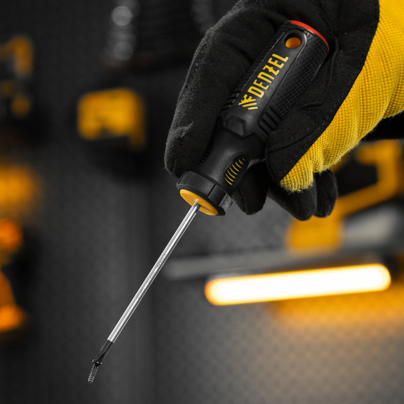 Отвертка Denzel 121717 с трехкомпонентной рукояткой, со стержнем из стали S2, длиной 75 мм, предназначена для закручивания и откручивания резьбового крепежа типа PH0. Высокоточный намагниченный шлиц избавляет мастера от необходимости придерживать винт или саморез рукой. Отвертка рекомендована для профессионального использования.