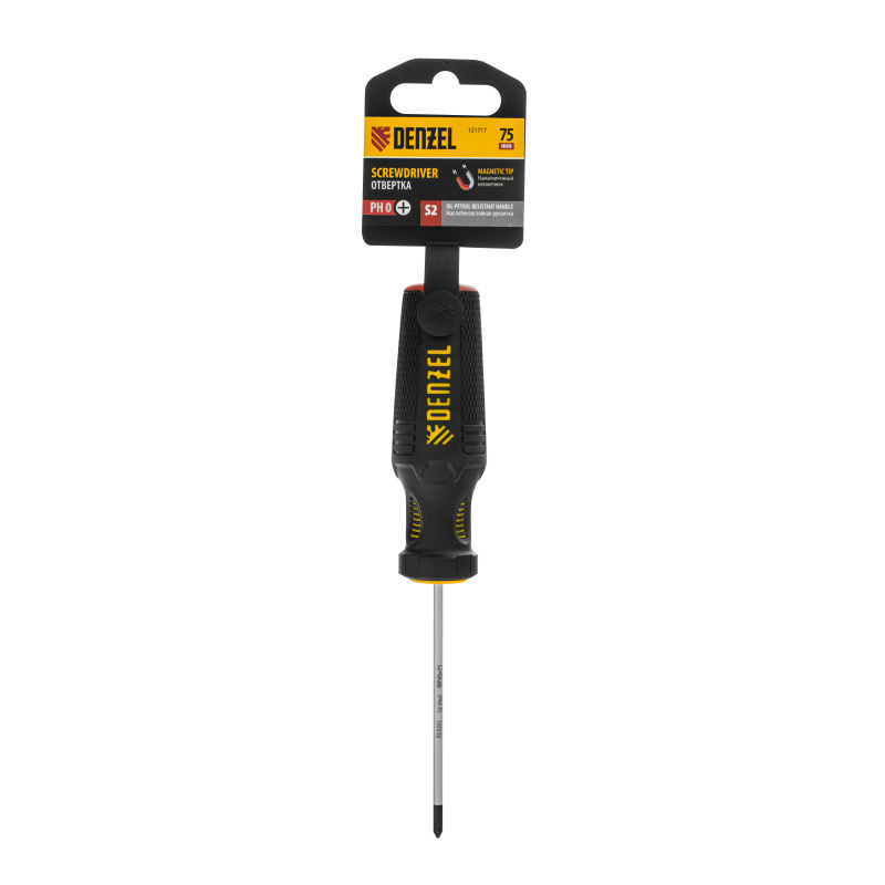 Отвертка, PH0х75 мм, S2, 3к рукоятка Denzel