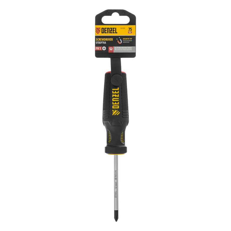 Отвертка, PH1х75 мм, S2, 3к рукоятка Denzel