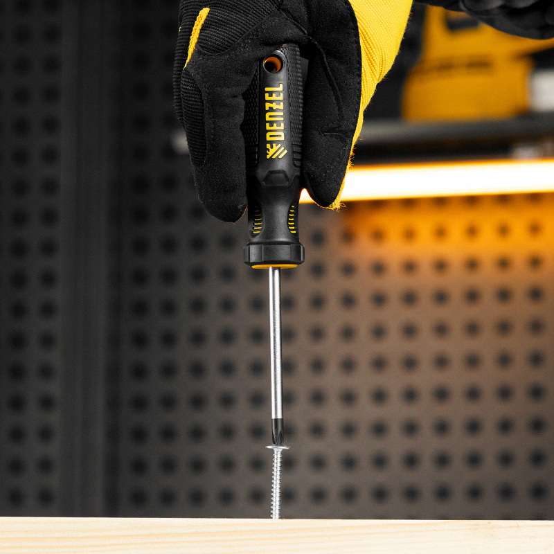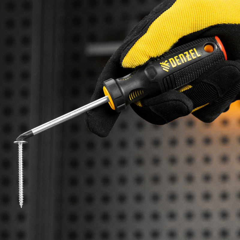 Отвертка Denzel 121737 с трехкомпонентной рукояткой, со стержнем из стали S2, длиной 75 мм, предназначена для закручивания и откручивания резьбового крепежа типа PH1. Высокоточный намагниченный шлиц избавляет мастера от необходимости придерживать винт или саморез рукой. Отвертка рекомендована для профессионального использования.