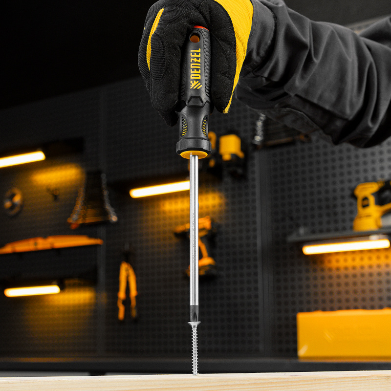 - Удобное хранение — отверстие в рукоятке позволяет подвешивать отвертку на крючок или скобу.