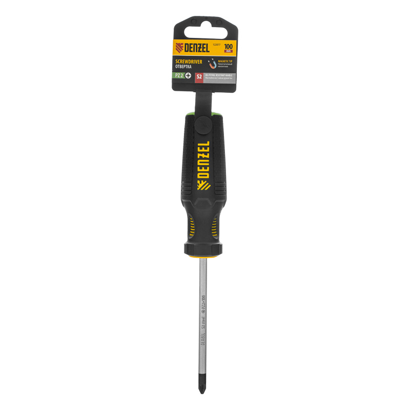 Отвертка, PZ2x100 мм, S2, 3к рукоятка Denzel