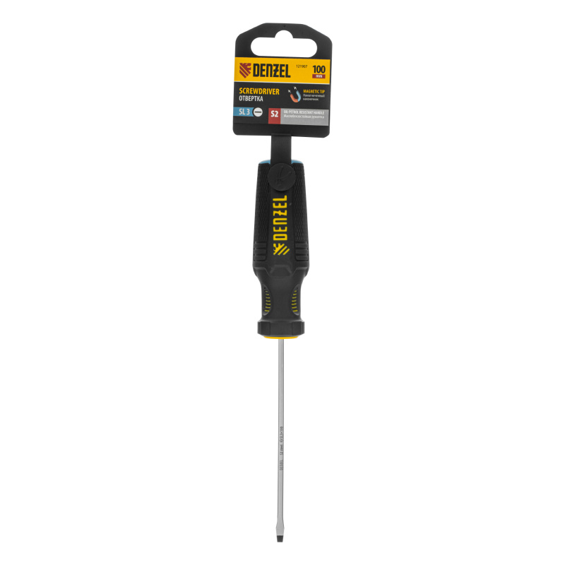 Отвертка, SL3х100 мм, S2, 3к рукоятка Denzel