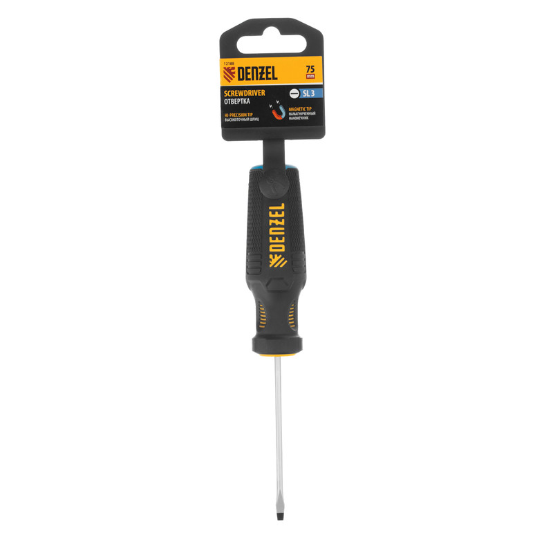 Отвертка SL3х75 мм, CrV, трехкомпонентная рукоятка Denzel