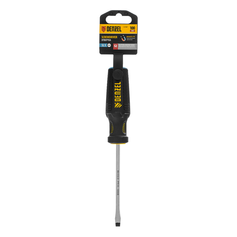 Отвертка, SL5x100 мм, S2, 3к рукоятка Denzel