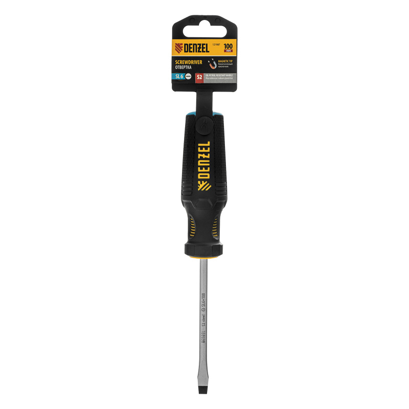 Отвертка, SL6x100 мм, S2, 3к рукоятка Denzel