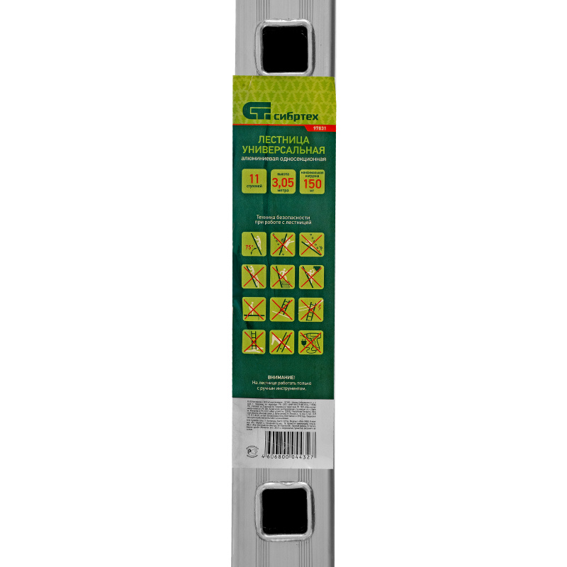 Приставная лестница Сибртех 97831 с 11 ступенями не требует сборки — она готова к использованию сразу после приобретения. Будет полезна в различных сферах, начиная от бытового применения, заканчивая эксплуатацией коммунальными службами и работниками магазинов.