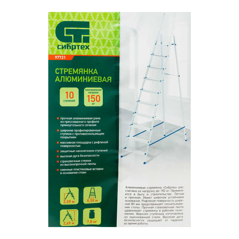 Стремянка, 10 ступеней, алюминиевая, Сибртех