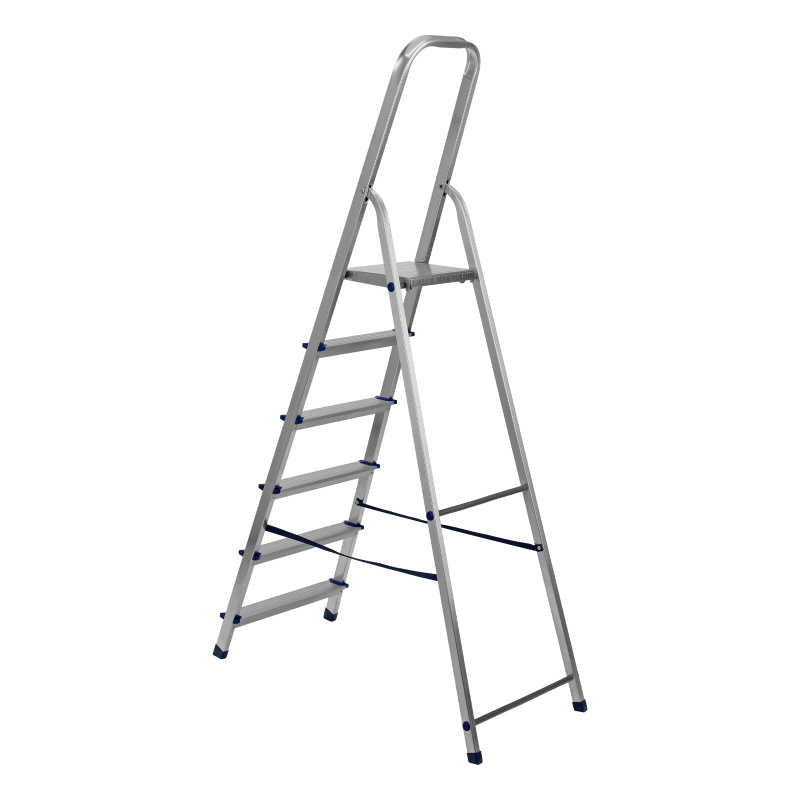 Стремянка алюминиевая Сибртех 97716 с 6 ступенями предназначена для выполнения работ на высоте, превышающей человеческий рост. Высокая дуга безопасности обеспечивает устойчивое положение пользователя. Площадка находится на высоте 123,3 см от опорной поверхности, рабочая высота стремянки составляет 323,3 см (при среднем росте пользователя 170 см). Стремянка пригодится во время строительных и ремонтных работ, позволит без лишних усилий повесить картину или шторы, покрасить стену, достать нужную вещь с антресолей или верхней полки шкафа, а также решить много других бытовых задач.